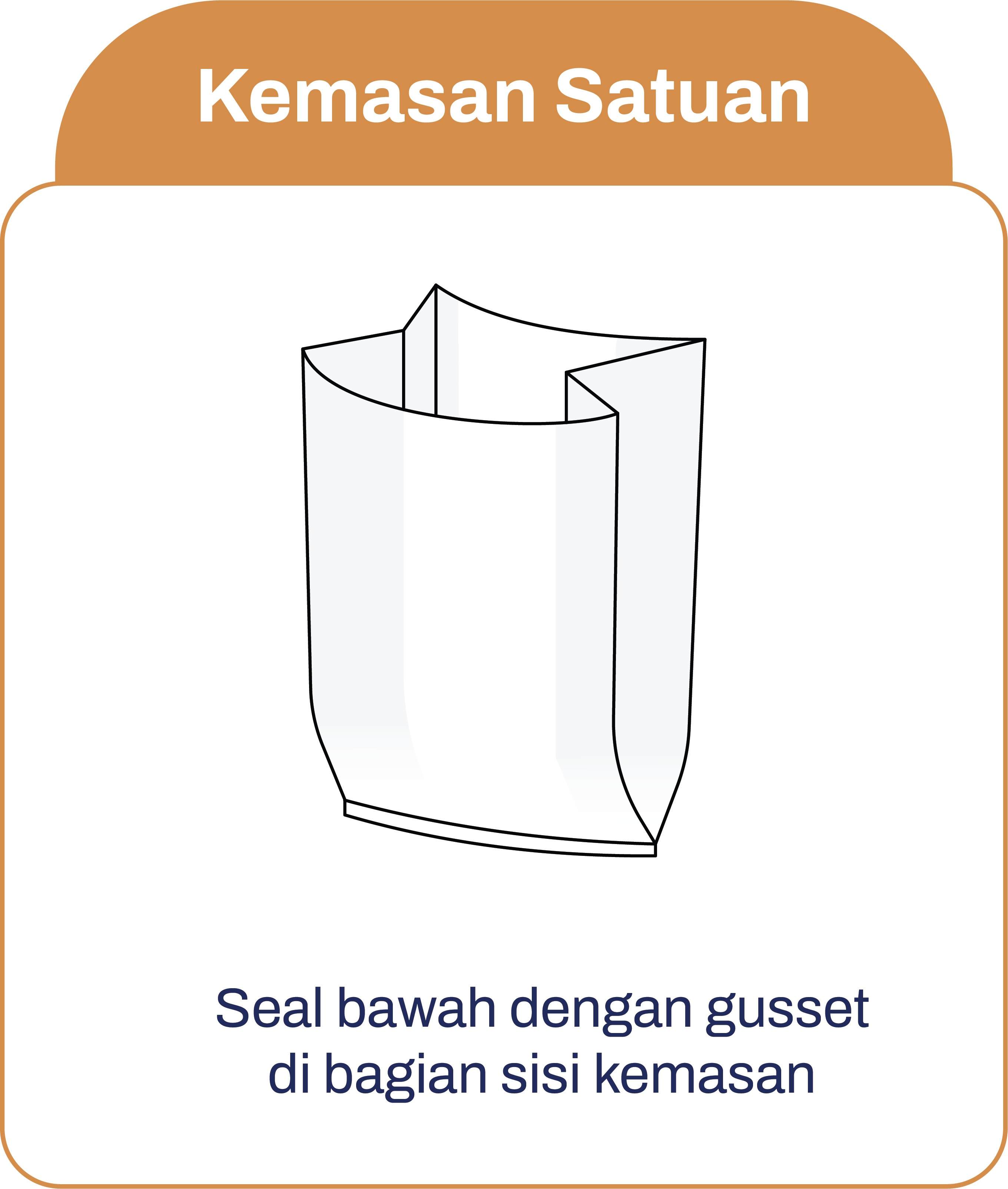 | : | Kemasan dengan gusset memungkinkan volume dan kapasitas yang lebih besar dibandingkan dengan kemasan datar, cocok untuk mengemas produk berukuran besar atau berbentuk tidak beraturan. |